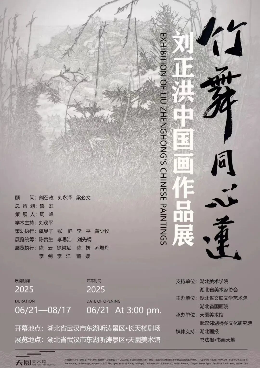 在武汉东湖听涛景区的天圜美术馆里,一场名为《竹舞同心莲》的中国画展正静静绽放。展厅中,刚直挺拔的丛竹与柔韧纯净的荷花在刘正洪的笔墨间交融,作品既蕴含着传统文人画的清雅韵味,又透射出豪情奔放的时代气度。刘正洪用40年的艺术坚守,将竹的坚韧与荷的乡愁,谱成笔墨华章。
