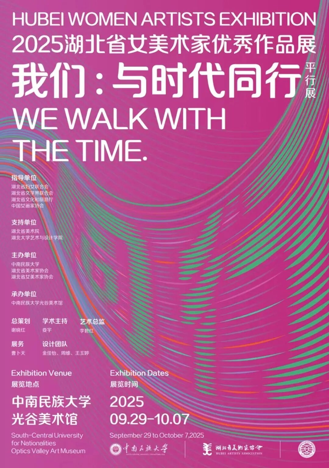 在此,谨向湖北省文学艺术界联合会、湖北省妇女联合会、湖北省文化与旅游厅、中国女画家协会、湖北省美术家协会的悉心指导致以诚挚感谢,正是各方的支持让展览的学术定位与时代意义得以凸显;感谢中南民族大学光谷美术馆提供专业的展示空间,为作品与观众的深度对话搭建了优质平台;更要感谢每一位参展艺术家的倾情创作让“与时代同行”的主题有了最生动的注脚和最鲜活的表达。