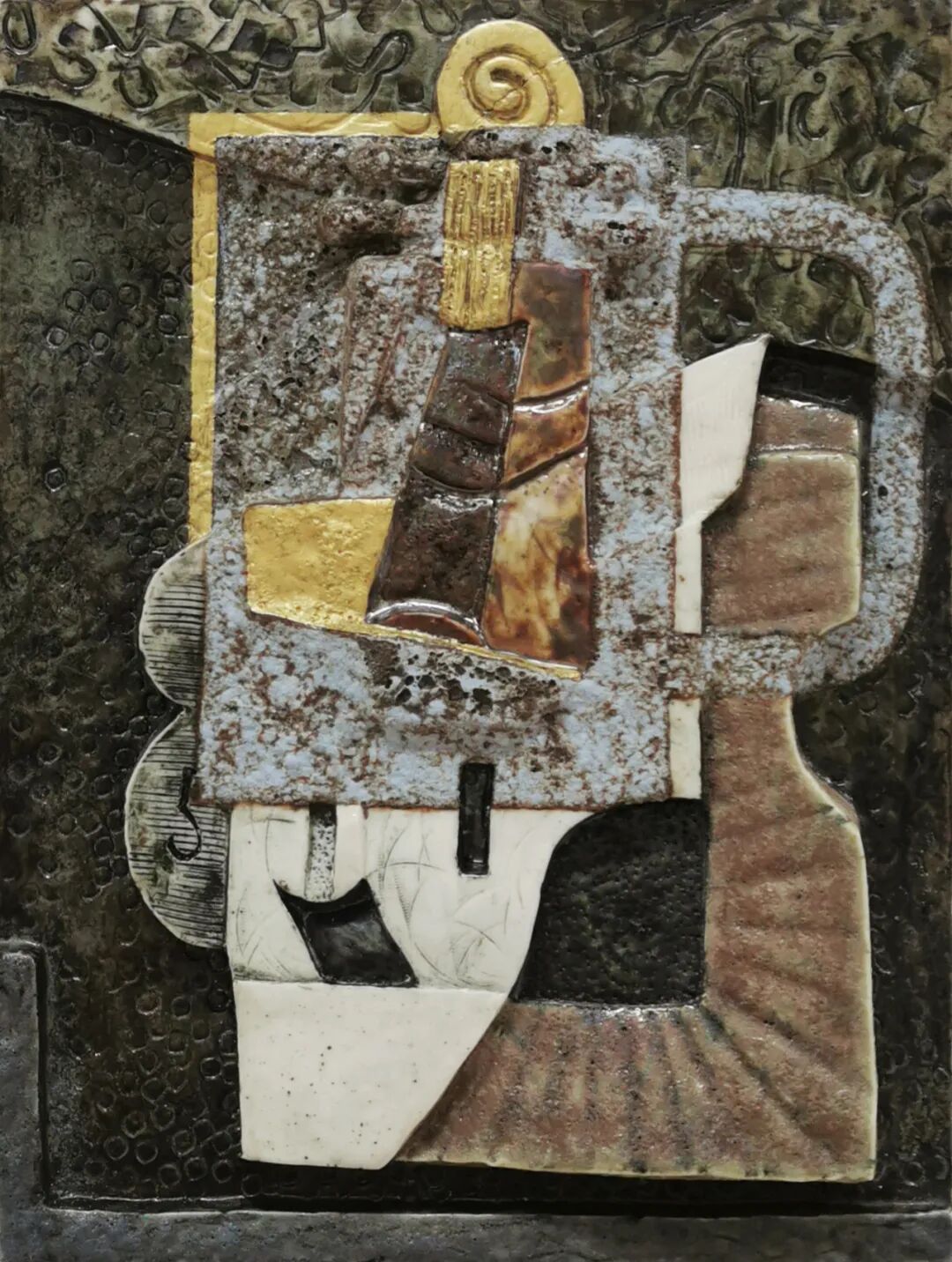 瓷土、釉、合成树脂、金箔漆 50×40×5cm 2019年