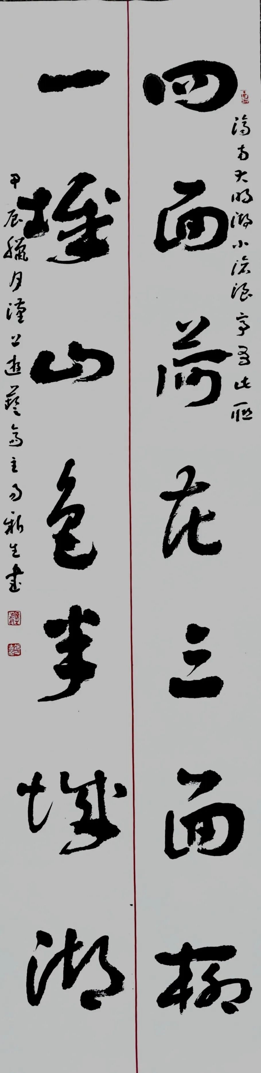 章草对联 四面荷花三面柳 一城山色半城湖