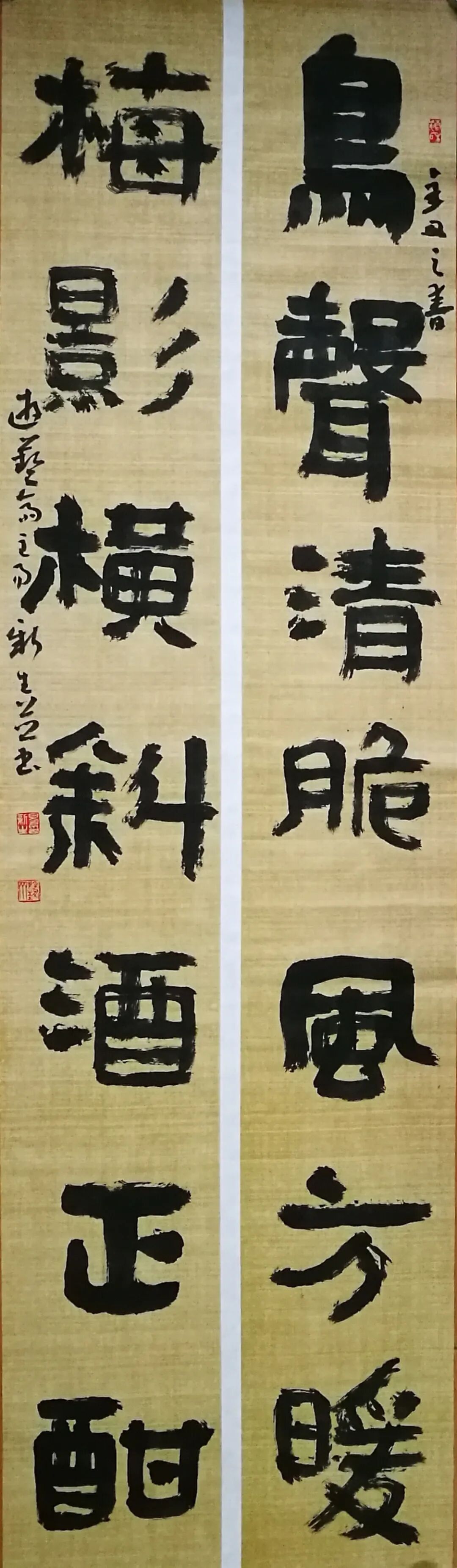 隶书 鸟声梅影自作联