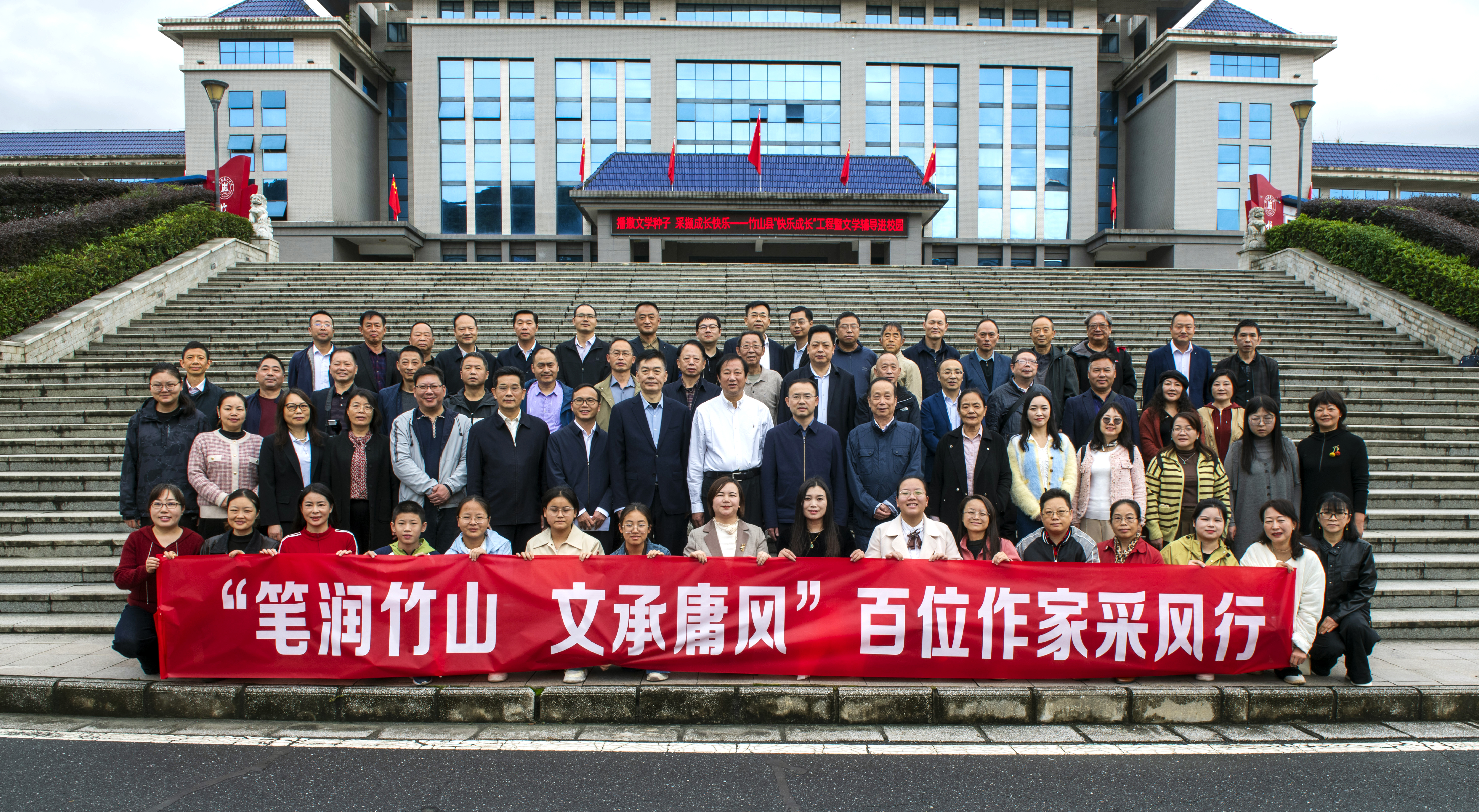 秋意渐浓,文心涌动。10月18日,竹山县一中报告厅内座无虚席,一场以“笔润竹山·文承庸风”为主题的2025年秋季文学创作培训活动热烈启幕。近300名县作协会员、县一中高二年级文科班的师生代表们齐聚一堂,与特邀前来的省、市文学名家、兄弟县市作协同仁共同沉浸于这场文学盛宴。