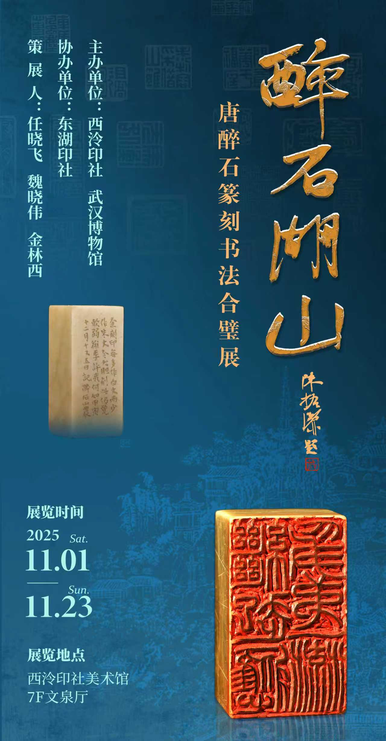 时值仲秋,湖山含翠,西子湖的烟波与东湖的云影,再度因金石之缘交相辉映。由西泠印社、武汉博物馆联合主办,东湖印社协办的“醉石湖山——唐醉石篆刻书法合璧展”将于11月1日在西泠印社美术馆启幕。