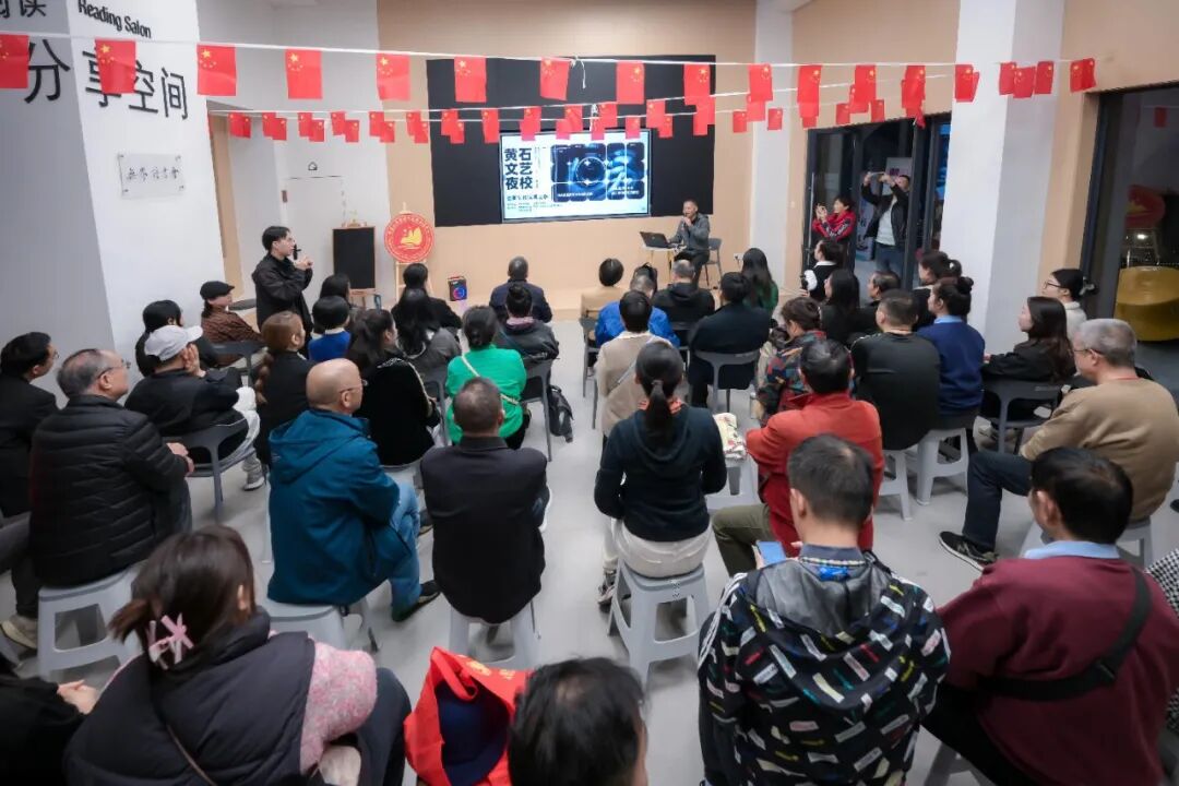 10月28日晚,西塞山区新时代文明实践站内座无虚席,黄石文联主办的文艺夜校第二季第一讲摄影课程《摄影创作探索之旅》在此开讲,60余位摄影爱好者和社区居民齐聚一堂,聆听黄石市摄影家协会主席刘红华的精彩分享。市文联党组成员、副主席刘远芳,西塞山区文联主席罗国强,市摄协副主席、西塞山区摄协主席顾艳霞出席活动。